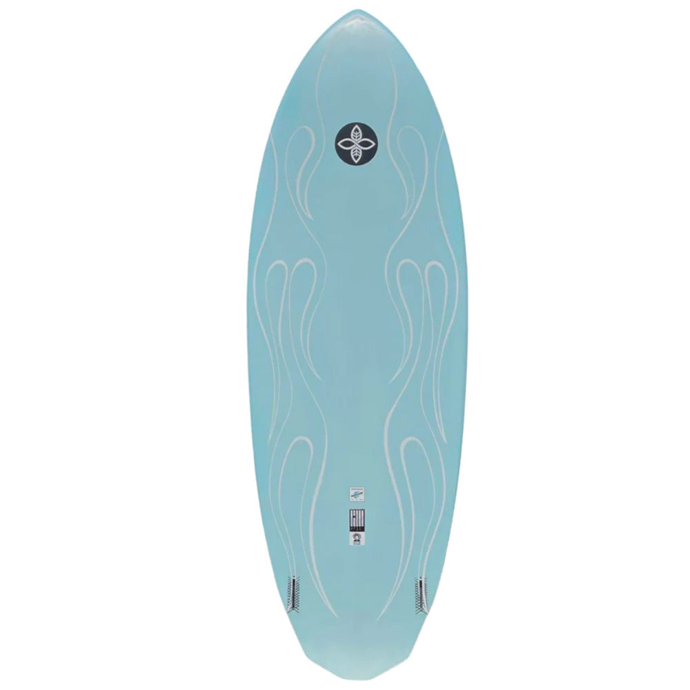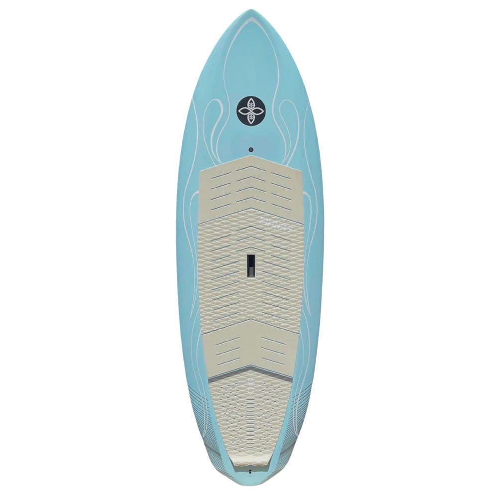 The straighter outline and wider tail allow the board to have automatic speed from take off and get the board up and planing on its own. We match that up with the low drag twin fin set up for unmatched speed and maneuverability.